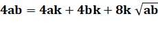 ED² = (b + a)² – (b – a)² = 4ab EL² = (a + k)² – (a – k)² = 4ak LD² = (b + k)² – (b – k)² = 4bk |