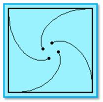poursuit une autre. Cette poursuite se termine au centre du carré et, les