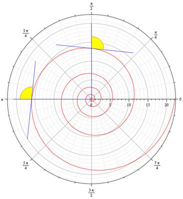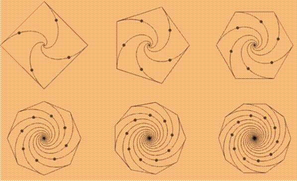 trajets engendrent quatre spirales logarithmiques. Curieusement dans ce cas, la