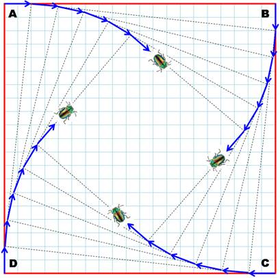 (scarabée) ou une fourmi … à chaque sommet A, B, C et D du carré. Le scarabée A poursuit le