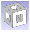 des deux faces après la première est égale à: 2 × k3. Le volume du cube évidé devient: