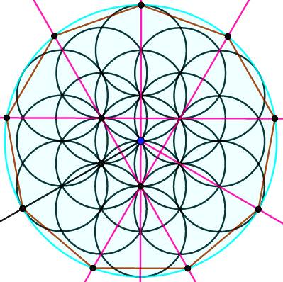 points orange. 8. Ligne joignant tous les points verts qui forme l'ennéagone régulier