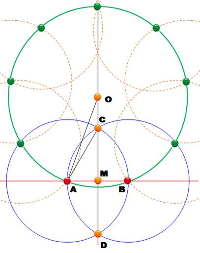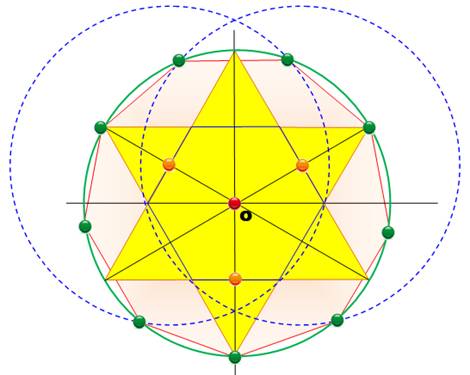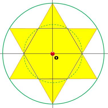 peintre). Construire cet hexagramme 1. Cercle de centre O de rayon R (vert pointillé). 2. Report du rayon R, six fois sur la circonférence (construction