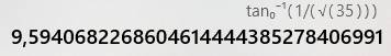 Calcul de la tangente et de l'arc tangente. Soit: 20,109 degrés au lieu des 20° attendus (0,5% d'erreur relative). |