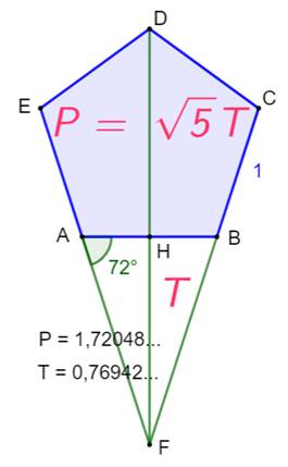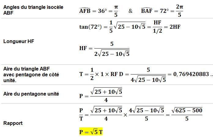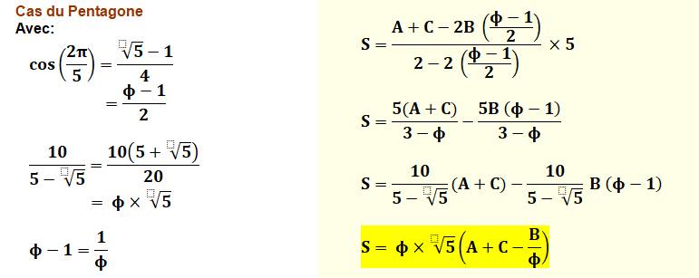 peut être appliquée au pentagone régulier. Évidemment, on doit retrouver la formule