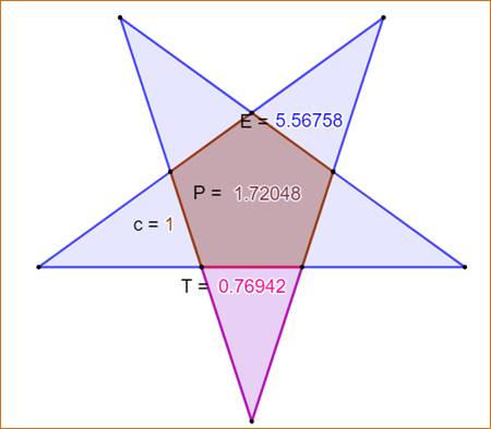 est la relation entre l'aire de l'étoile à cinq branches avec le pentagone