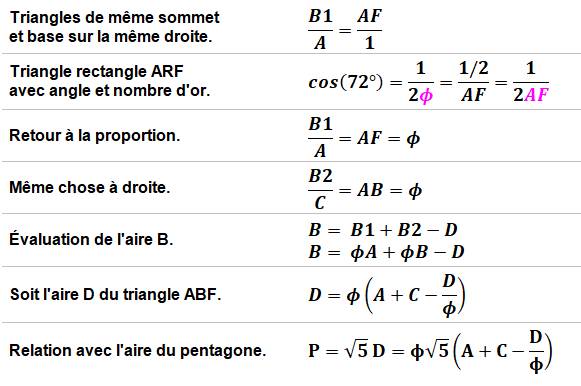 pentagone vaut racine de 5 fois l'aire de la branche (démonstration