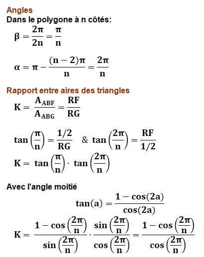 But Un polygone régulier (ici un heptagone): aire P. Sa branche ABF: aire T Exprimer T en fonction de P. On utilisera le rapport K entre l'aire du