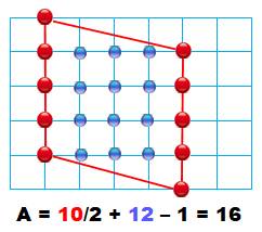 A = 3 × 4 = 12. Formule de Pick 1.