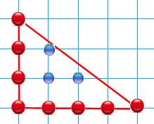 = 24 Aire du triangle : A = 35 – 2 – 24 = 9 Formule de Pick 1. Compter les points rouges P = 4; 2. Compter les points bleus Q = 8; 3.