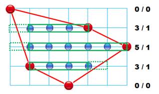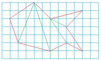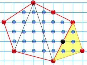 note tous les points "entiers" du polygone. En vert ceux sur le