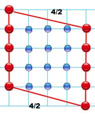 sont sur la quadrillage Aire: A = 8/2 +