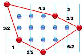 (the points of the grid that lie exactly in the boundary of the polygon). |