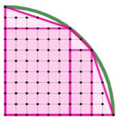 Sommaire de cette page >>> Approche avec le rectangle >>> Cas du triangle quelconque >>> Exemples de figures particulières >>> Cas des polygones réguliers >>> Pourquoi ça marche – Intuitivement >>> Démonstration par récurrence >>> Aire sous les entiers du cercle >>> Bilan >>> Anglais |