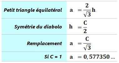 en diabolo. Dessinons le triangle équilatéral rouge dont le