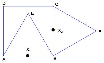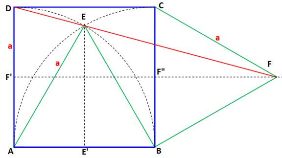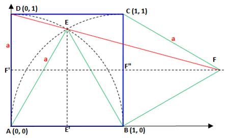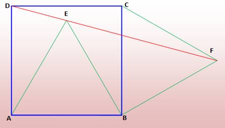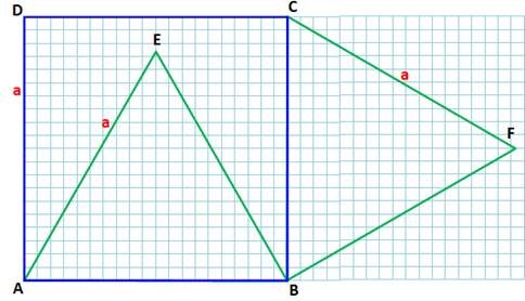ABCD est un carré de côté a. AEB et BFC sont des triangles équilatéraux de côté a. |