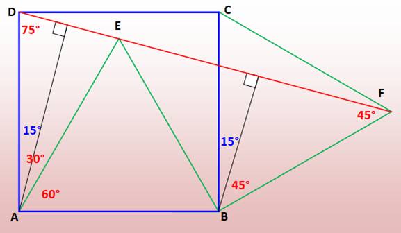 de B du triangle EBF. Son angle par rapport a AD est égal à 15° (Voir figure). Ces deux hauteurs font le
