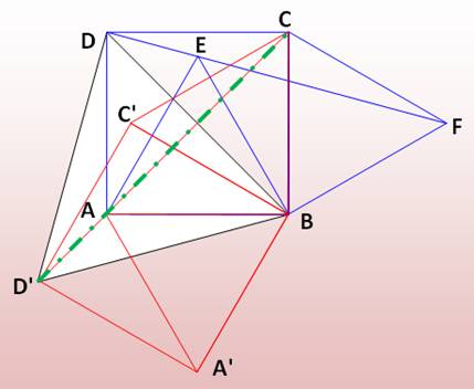 de 60° autour de B. Image de F = C Image de E = A Image de D = D' Montrer que F, E et D sont alignés, c'est montrer que C, A et D' sont