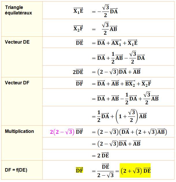 déterminant est nul, les vecteurs DE et DF sont colinéaires. |