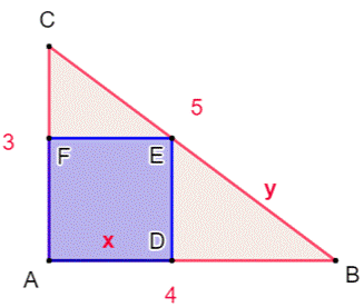 Construction Un triangle rectangle (par exemple: 3, 4, 5). Quelle est la taille maximale du carré construit