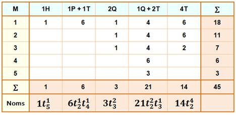 Dissection de l'hexagone Le tableau récapitule le décompte selon les cas