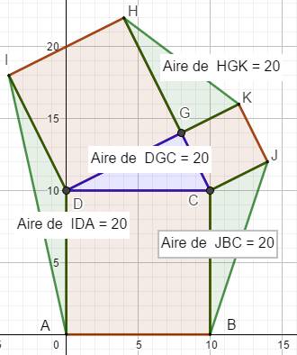 triangles en vert ont la même aire que le triangle originel DCG. Bien noter Ils ne