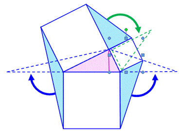flèches montrent comment opérer une rotation de 90° des triangles bleus