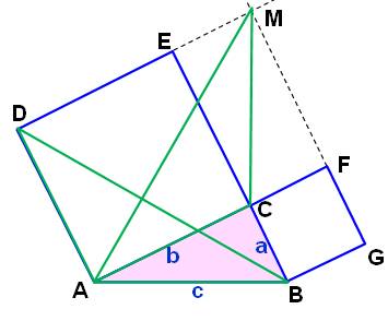 de Pythagore s'appliquant aux triangles rectangles. Construction Triangle ABC et carrés extérieurs sur les côtés