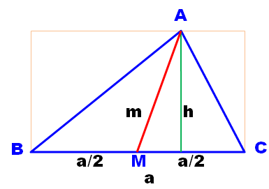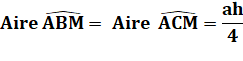 hauteur et une base égale (AM = MB) ont la même aire. Bleu +