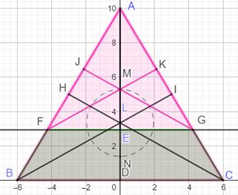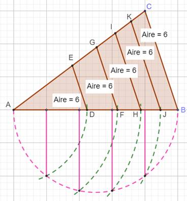 triangle et quatre trapèzes) de même aire. Aire du triangle