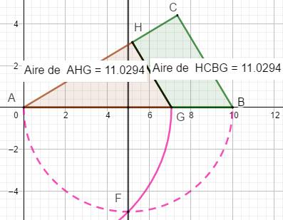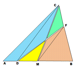Justification Le quadrilatère DCFM est un trapèze et ses triangles latéraux ont la même aire: Vert = Jaune Les deux triangles CAM et CBM, avec la même