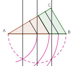 partage en k parties de même surface. Divisez alors AB en k segments égaux. Exemple avec k =