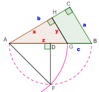 z = AG = AF et z² = (c/2)² + (c/2)² = c²/2 |
