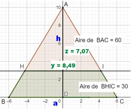 parallèle à la base ? Un triangle isocèle ABC. Le triangle isocèle AHI. On souhaite: Les valeurs numériques résultent du calcul qui
