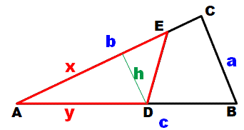 Finalement: valeur de x ou de y. Avec s = (a + b+ c ) / 2 (demi-périmètre). |