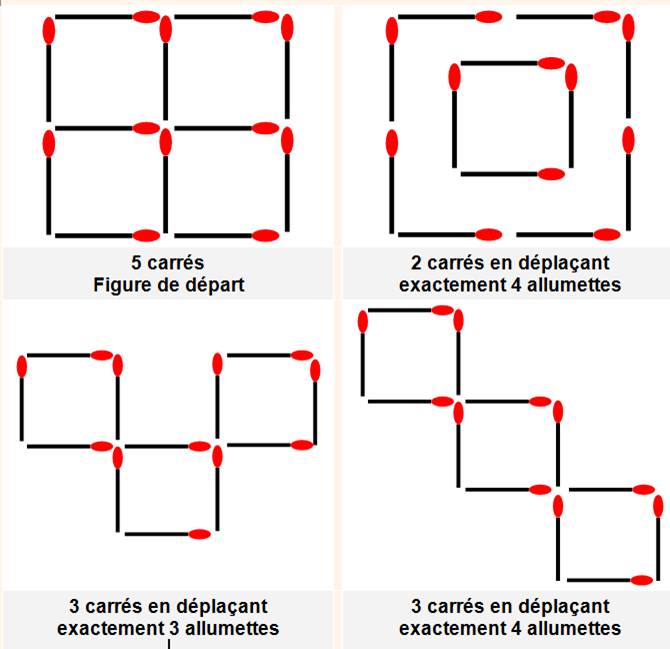 allumettes dessinent un carré. Les