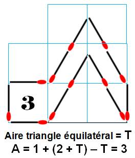 allumettes, on sait faire des polygones d'aire: 9, 6, 5. Est-il possible