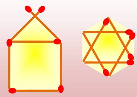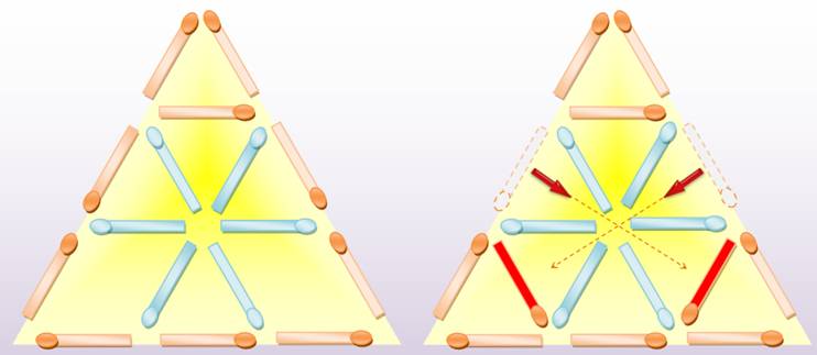 À droite: en déplaçant deux allumettes: 7 petits triangles. |
