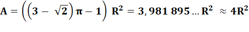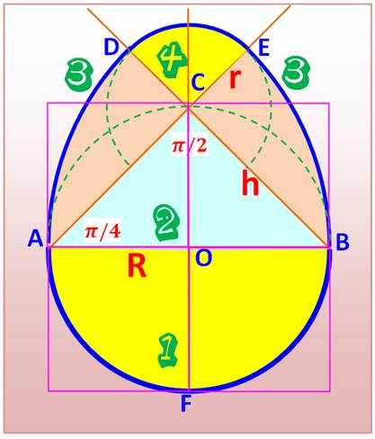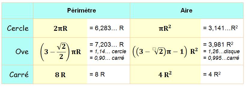 L'aire de l'ove (bleue) est proche de celle du grand carré rose (99,5%). |