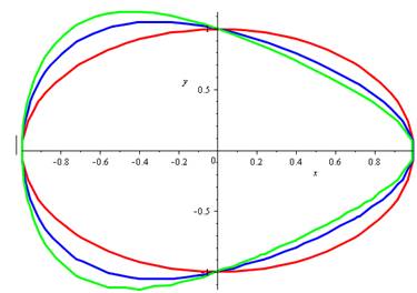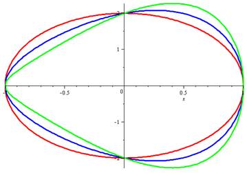 rouge: ellipse classique: x²+ y²/4 = 1 En bleu: ovale: x²+ (y/(2+0,6x))²