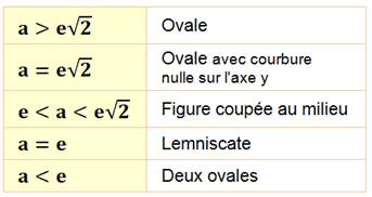 FM.FM' = a² et FF' = 2e, l'équation s'écrit: (x² + y²)² – 2e² (x² – y²) – a4 + e4