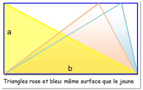 trois triangles ont la même base (b) et des hauteurs égales (a). Or,