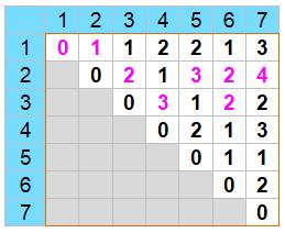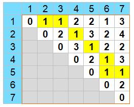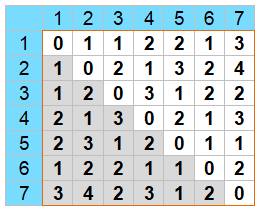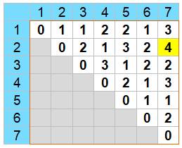 Tableau en i et j donnant toutes les distances