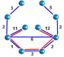 À gauche: graphe simple Sur ce graphe (bleu) À droite: graphe pondéré Sur ce graphe (bleu) |