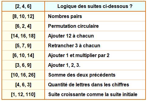 expliquez la logique de chacun des triplets proposés par rapport au premier