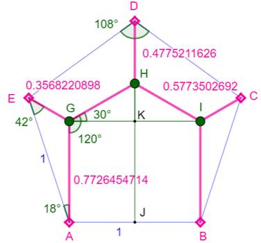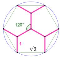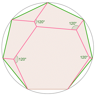 entourés d'angles de 120°. L'angle interne du pentagone