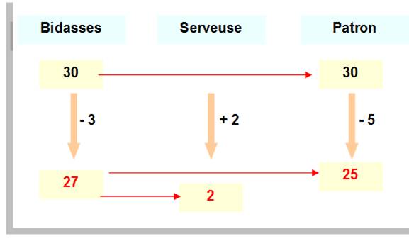 de donner à chaque gars 1€ et garde 2€ pour lui. Donc