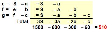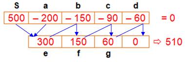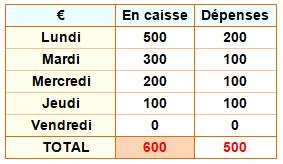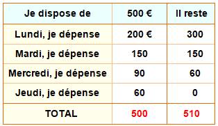 Autant le calcul sur les dépenses est bon: 500 – (200 + 150 + 90 + 60) = 0. a + b + c + d = 500 C'est bien
