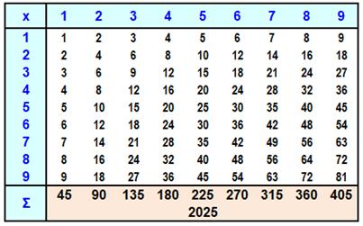 se lit: somme des produits des nombres i et j pour tous les j de 1 à 9 et