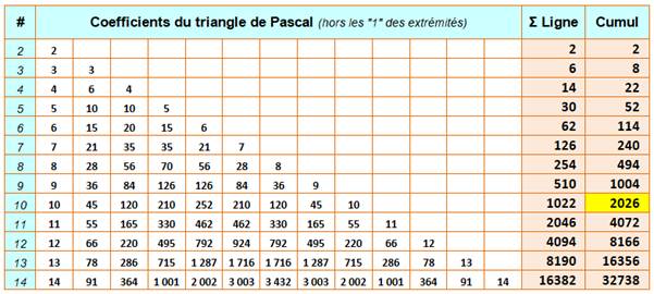 + 23 + … + 210 – 18 (le "18" est la quantité de "1" retirés)